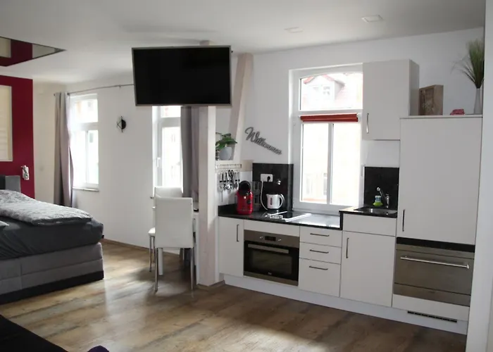Apartment Charmant 耶拿距离拿破仑石仅2.6千米。 公寓面积为34平方米,设有1间卧室,1间浴室和小厨房。